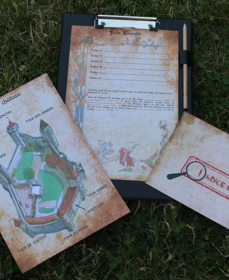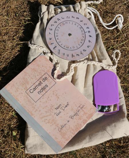 L’archéologue du château, René Dumont, a découvert une pierre taillée sur laquelle figure une inscription mystérieuse. Malheureusement, il a dû partir d’urgence effectuer des fouilles sur un autre site médiéval et n’a pas eu le temps de nous transmettre le résultat de son enquête sur la signification de cette inscription. Cependant, il nous a laissé son carnet de notes sur lequel figure un plan du château et des indices.